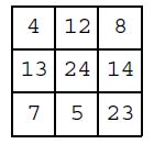 En la tabla de 3×3 de la figura de la derecha, Marta y Pedro han borrado, cada uno, los números de cuatro casillas, de manera que la suma de los números que ha borrado Marta es el triple de la suma de los que ha borrado Pedro. ¿Cuál es el número que ha quedado sin borrar?